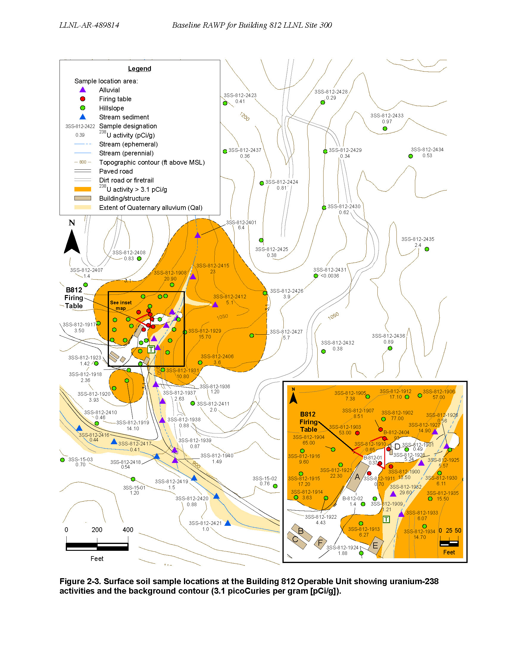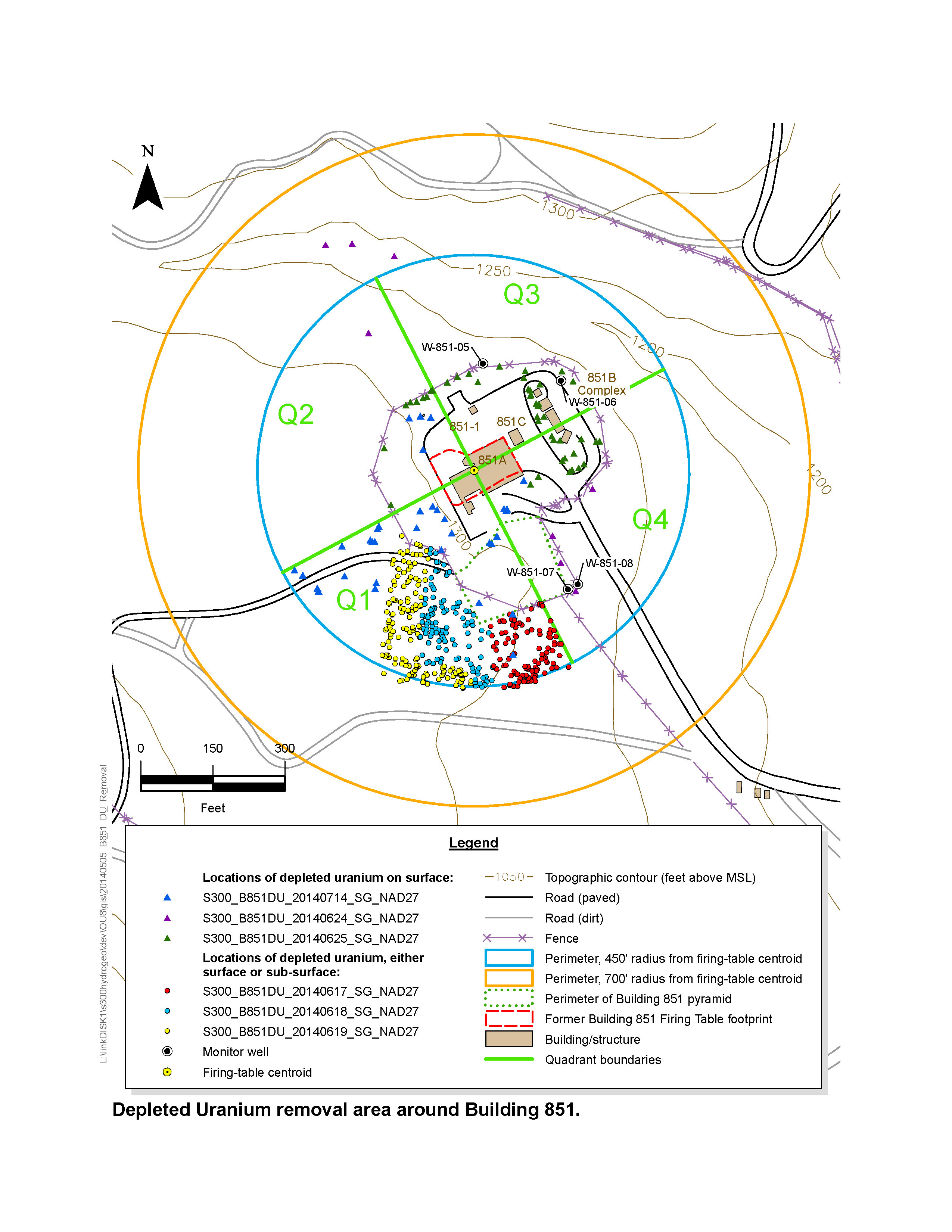 LLNL Site 300. Map shows GPS locations of depleted uranium on soil surface.